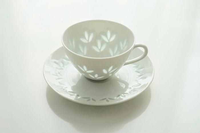 ライスシリーズは透かし彫りを施した箇所に釉薬を充填して焼成することで文様が透き通って見えるのが特徴で、中国陶磁器に見られる蛍手という技法を用いて製造されております。